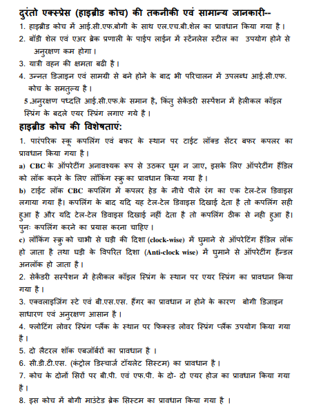 Carriage & Wagon – दुरंतो एक्सप्रेस गाड़ी पर कार्य करने के लिए अनुदेश