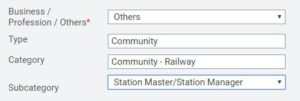 FOR ADDING YOURSELF IN DIRECTORY OF STATION MASTER COMMUNITY, CHOOSE “OTHERS” AMONG BUSINESS/ PROFESSION/OTHERS