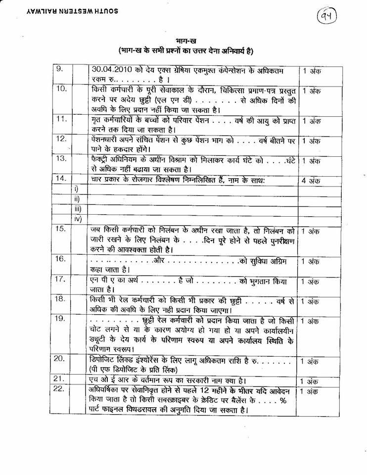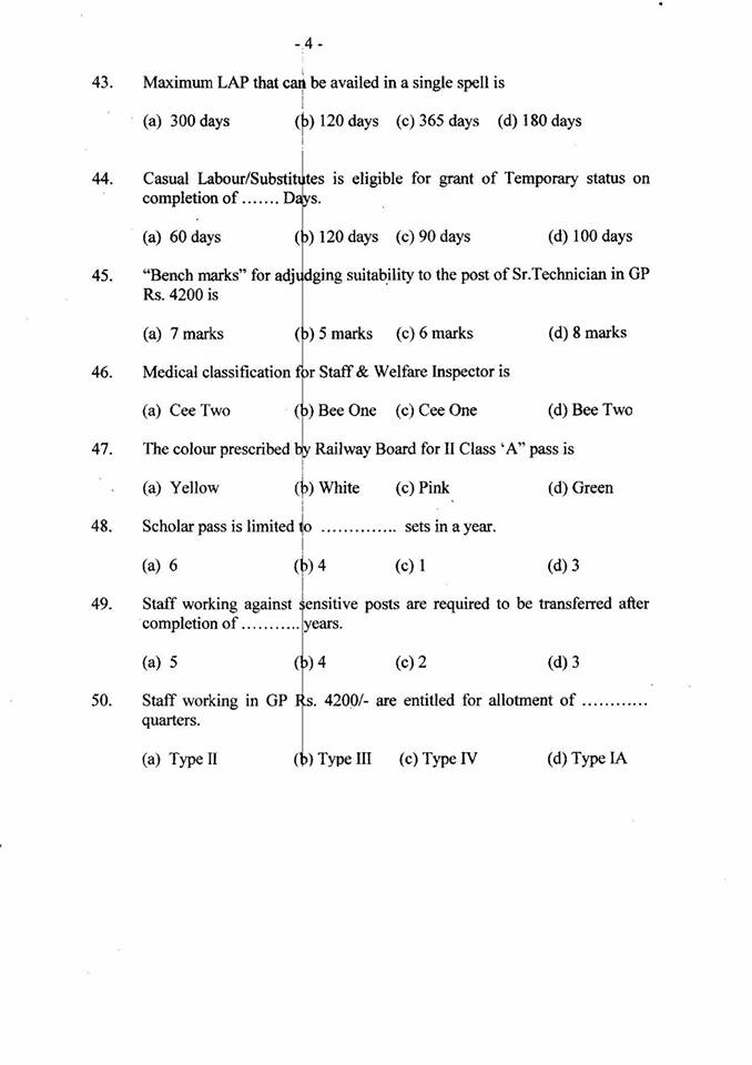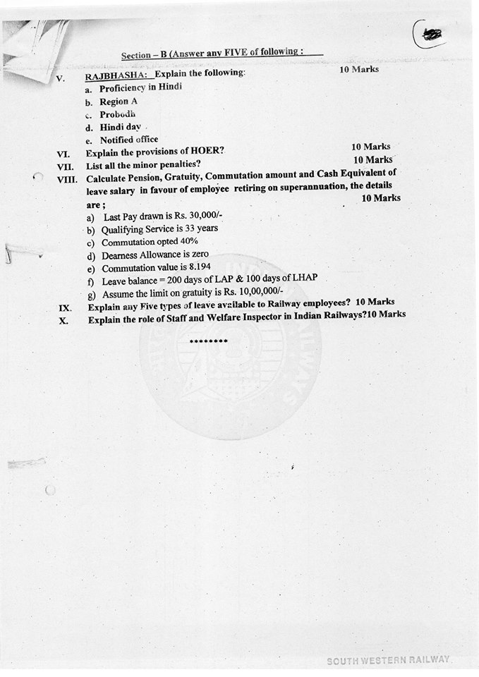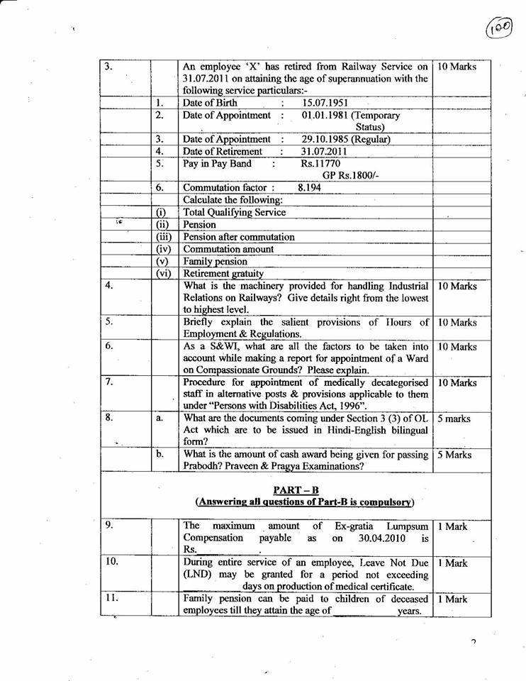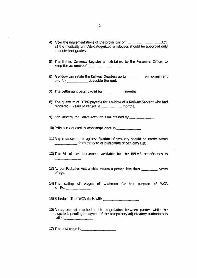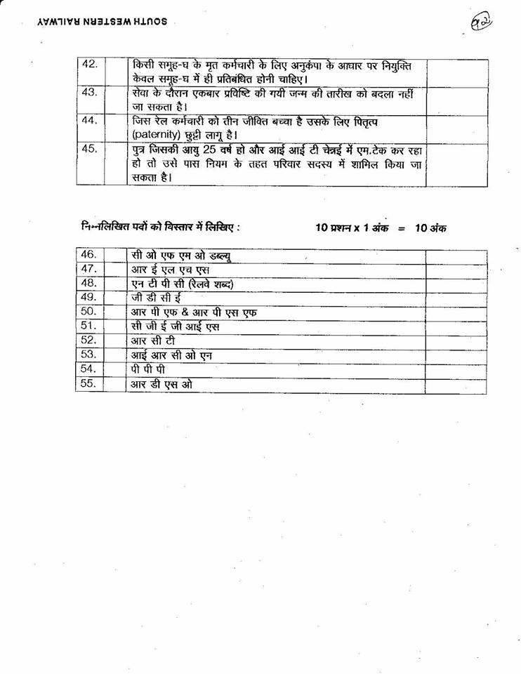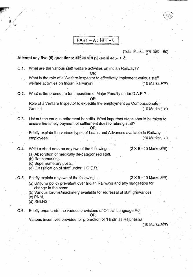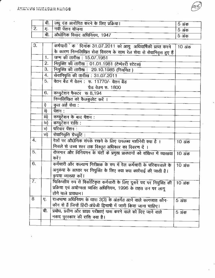 This entry was posted in 2 Railway Employee, 5 Question Paper / Bank, 6 Departmental Examination, Q Bank - Welfare Inspector, Railway Employee