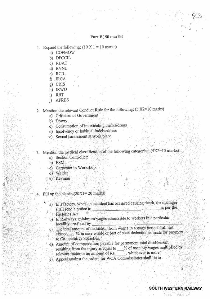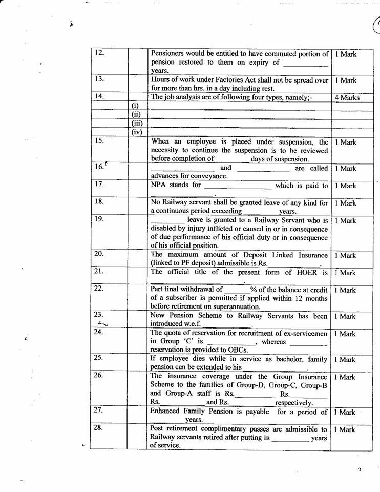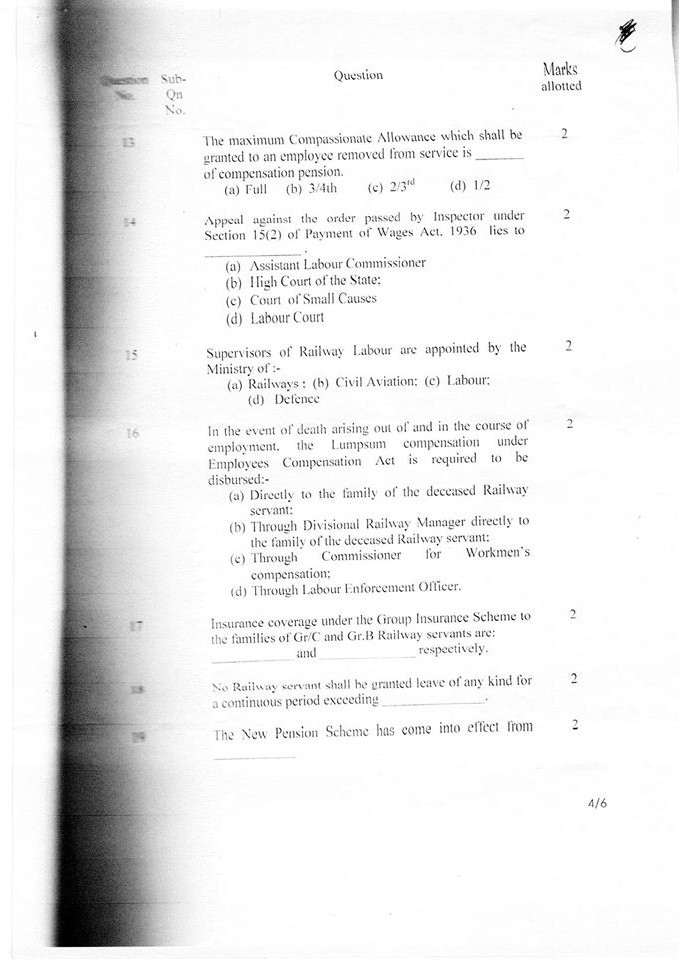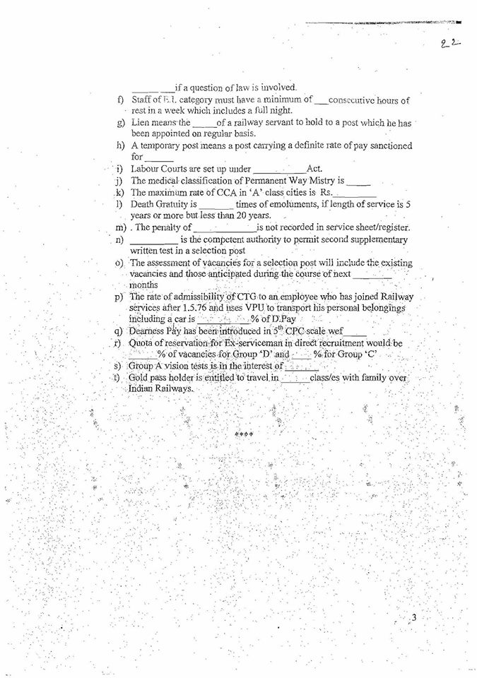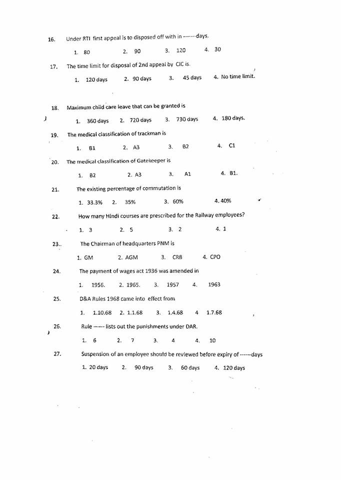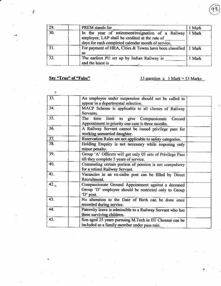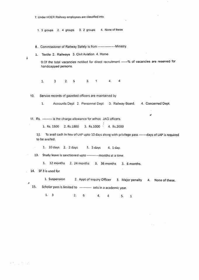 This entry was posted in 2 Railway Employee, 5 Question Paper / Bank, 6 Departmental Examination, Q Bank - Welfare Inspector, Railway Employee