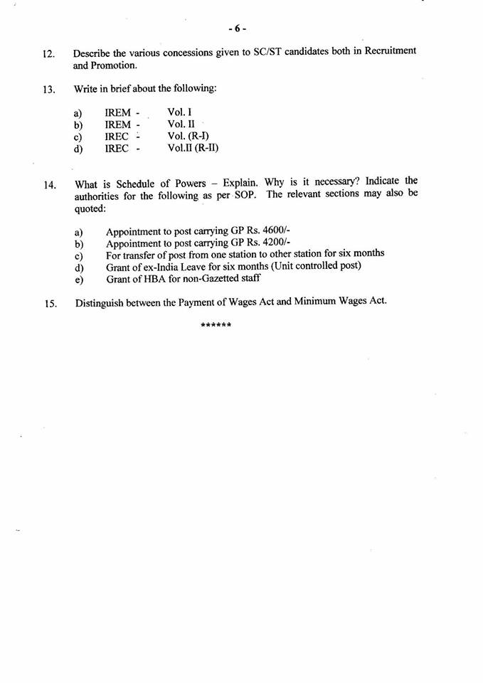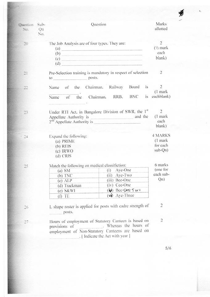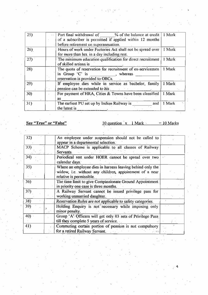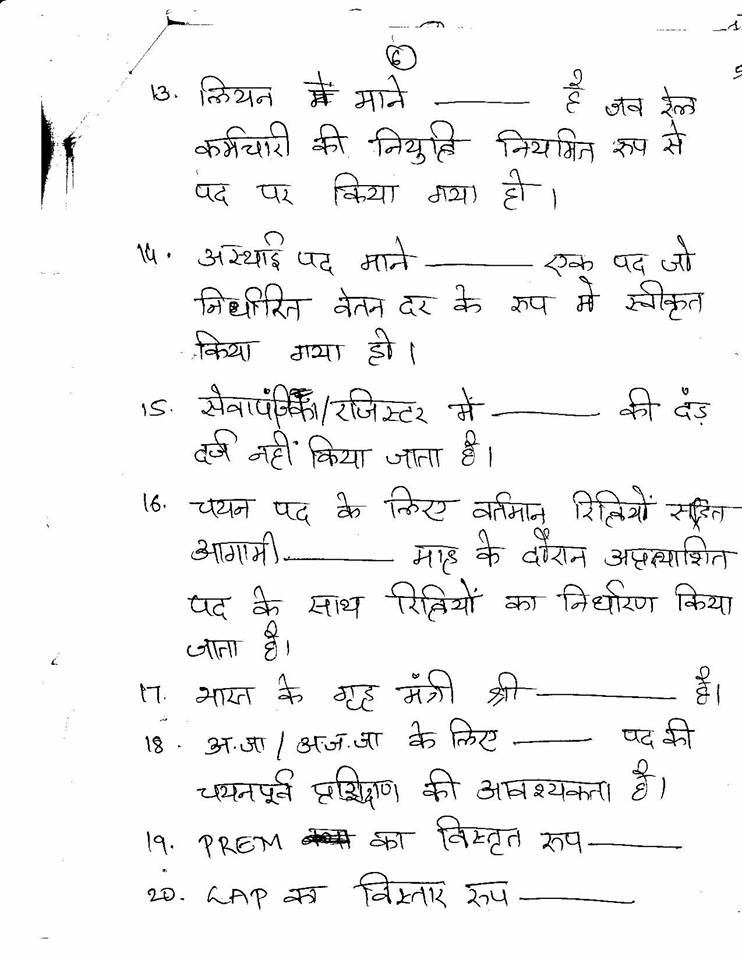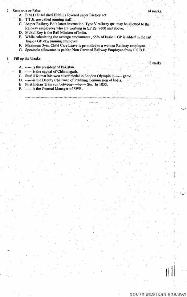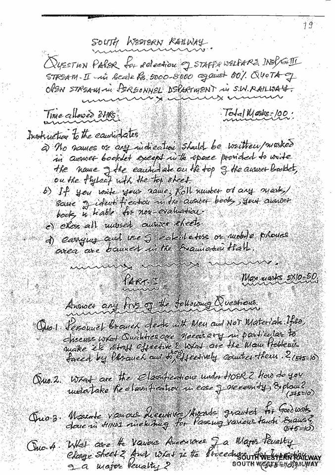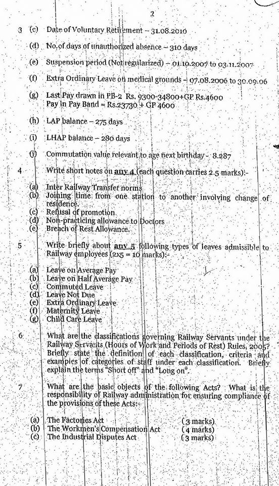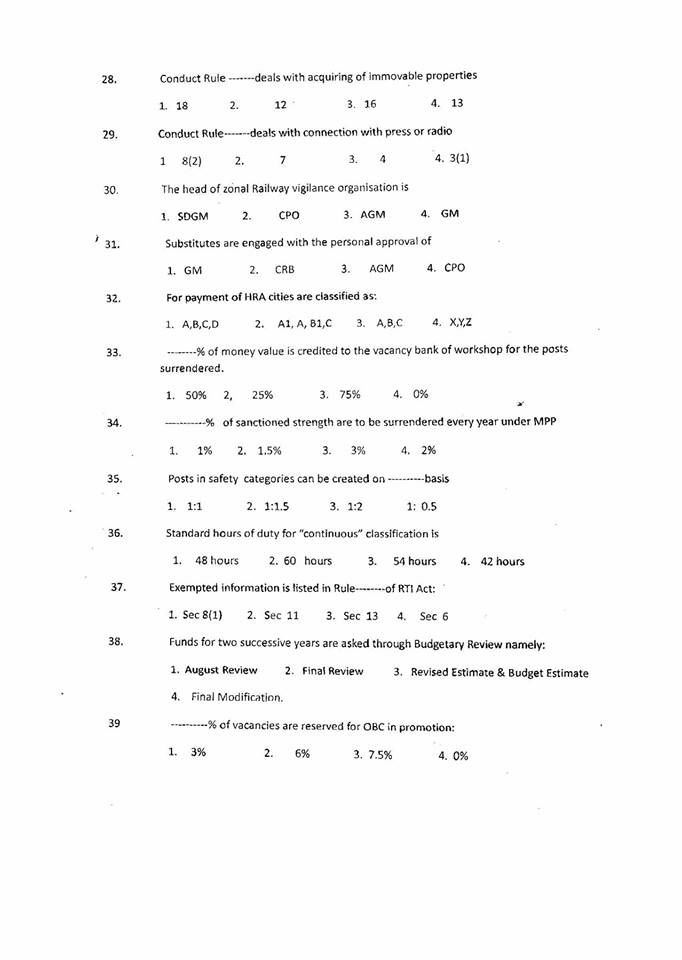 This entry was posted in 2 Railway Employee, 5 Question Paper / Bank, 6 Departmental Examination, Q Bank - Welfare Inspector, Railway Employee