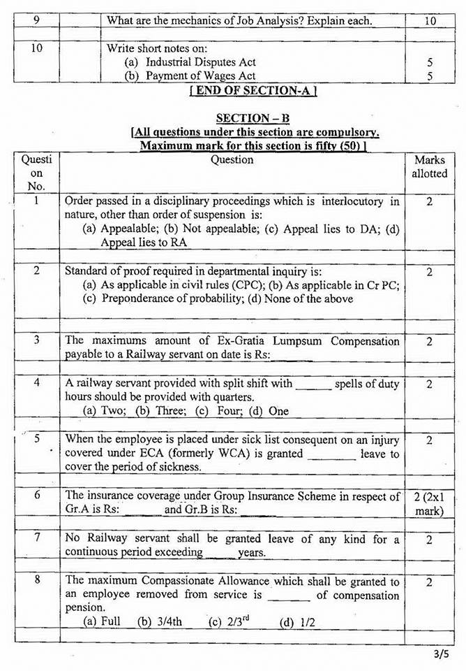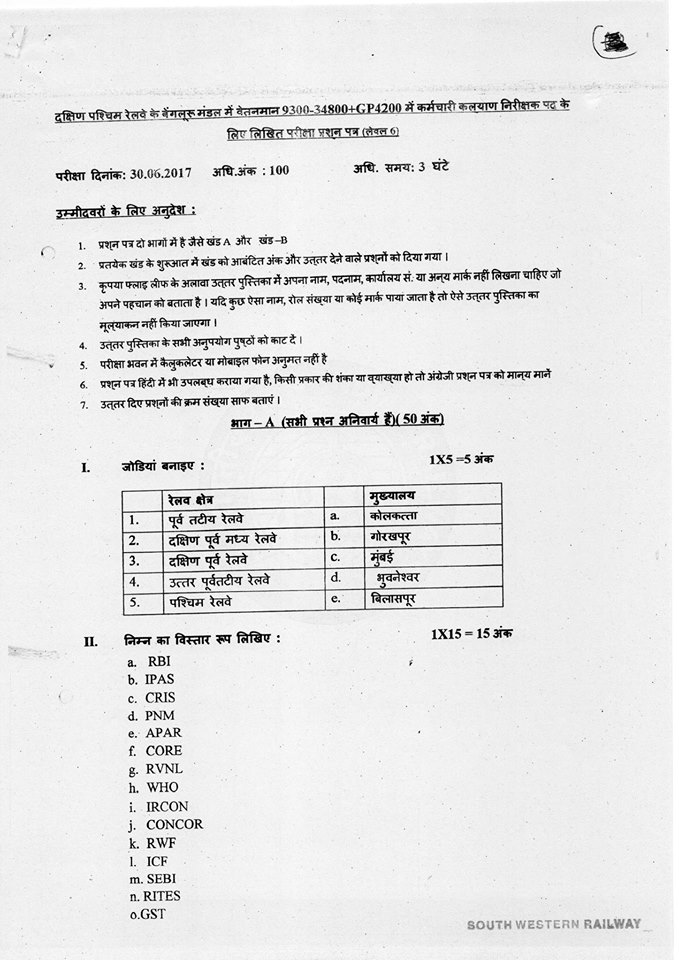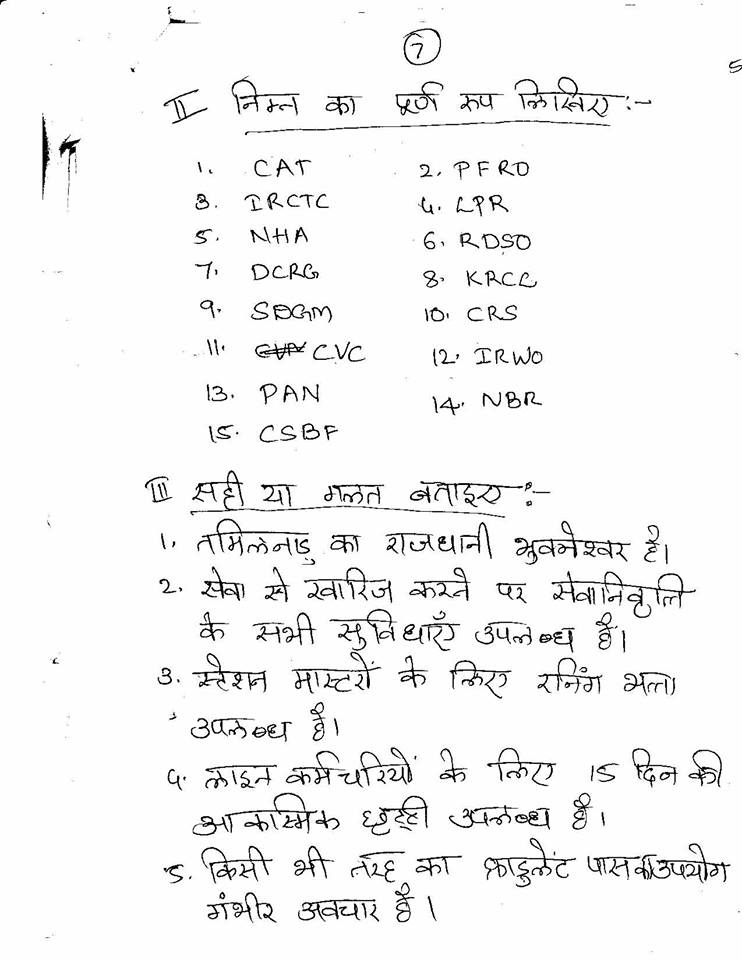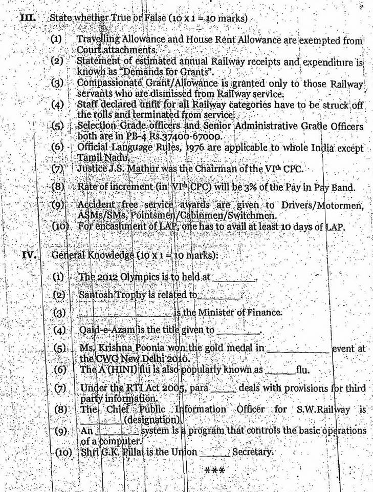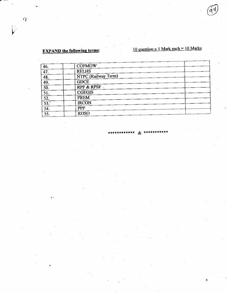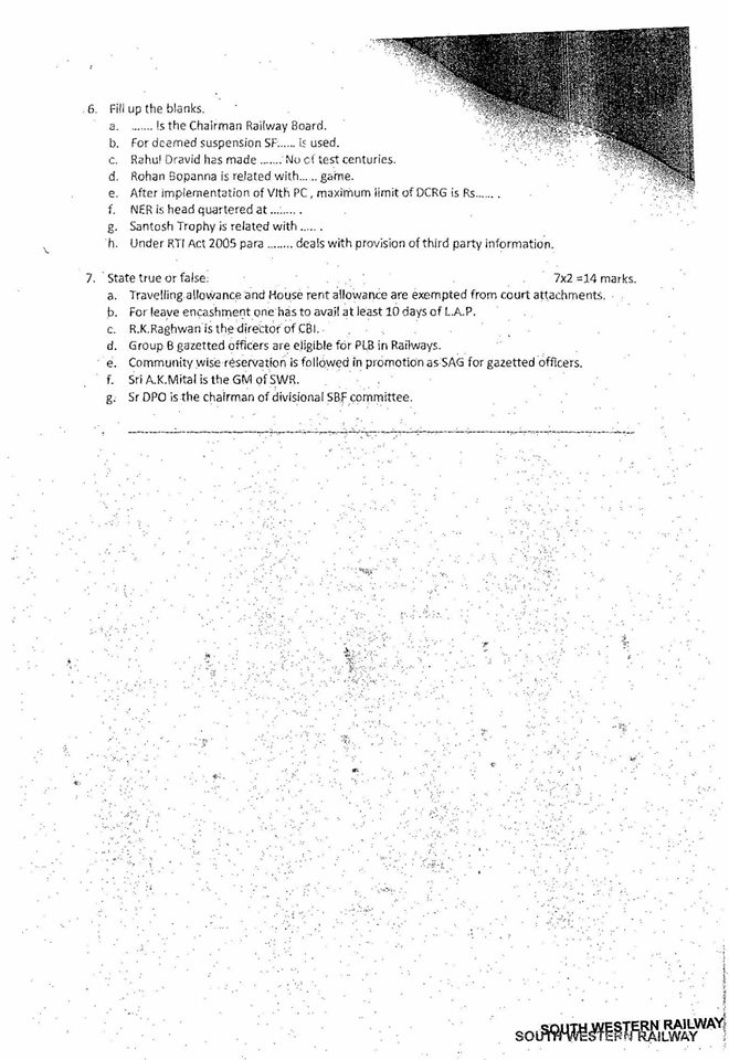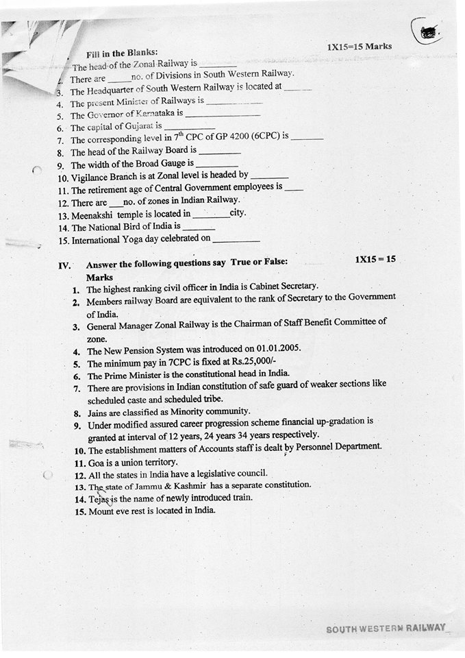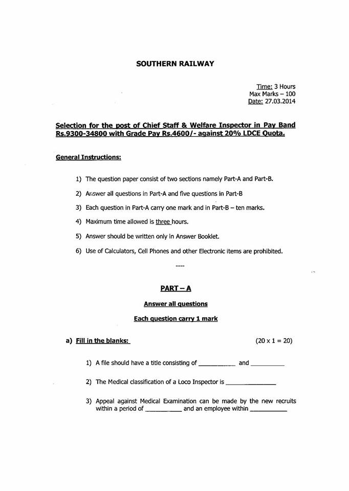 This entry was posted in 2 Railway Employee, 5 Question Paper / Bank, 6 Departmental Examination, Q Bank - Welfare Inspector, Railway Employee