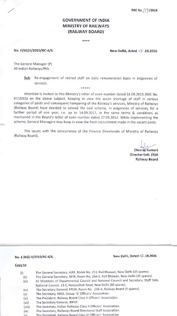 This entry was posted in 2 Railway Employee, 4 Railway Circulars / Rule, Circulars -Transfer, Retirement / Pension, Selection, Promotion & Posting, Railway Employee