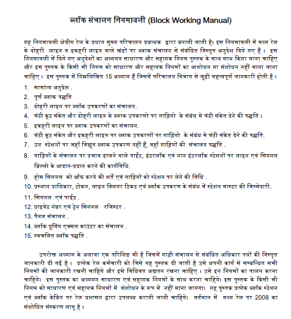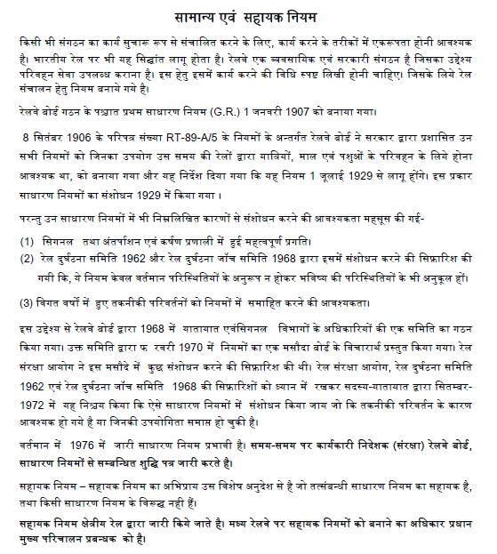 सामान्य एवं सहायक नियम ब्लाक संचालन नियमावली दुर्घटना नियमावली