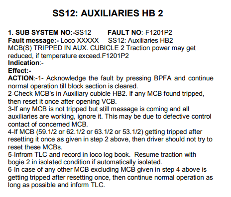 Trouble Shooting -SUB SYSTEM – 12 AUX HB 2 – ACT (RS) – ABB Loco (English) (Part – B)