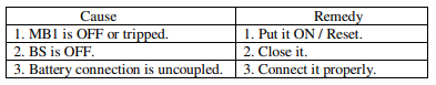 Auxiliary generator is failed/ Battery is discharging –(In this condition Auxiliary generator failure lamp glows continuously and Battery ammeter shows discharging current.)